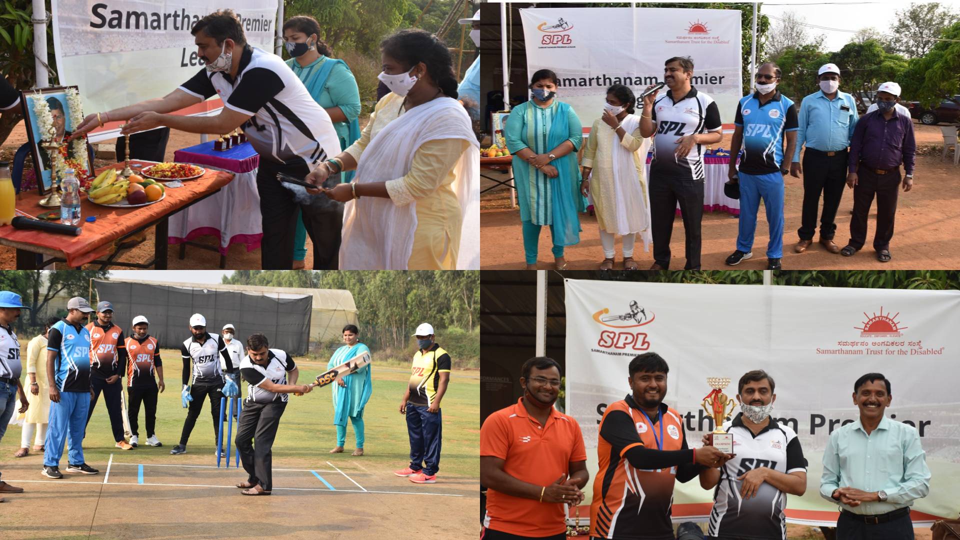 The grand opening of the Samarthanam Premier League was held on April 21, 2021 at Altiore Sports arena Bangalore. Dr Mahantesh G K inaugurated the tournament and wished all the players to give the best during the tournament. A Puja was held to pay tribute to Late Mr Nagesh on his 5th death anniversary.
